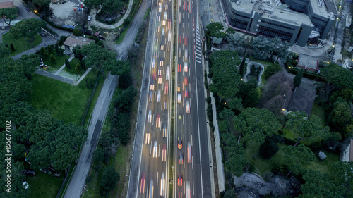 aerial, night, city, traffic, highway, road, light, street, urban, city landscape, building, skyline, downtown, architecture, transportation, business, transport, car, dusk, roma, view, italy, motion, speed, siding, area, industrial, drive, high, headlamp