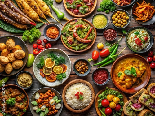Aerial View: Diverse Food Dishes & Packaging - PNG Images