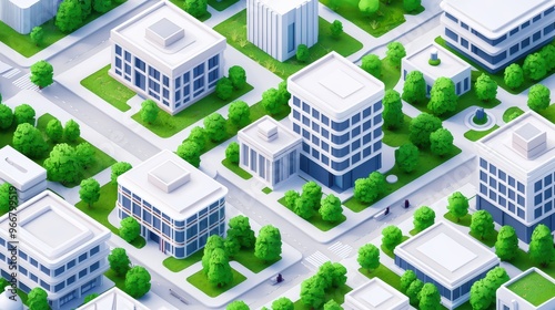 Aerial View of Modern Urban Cityscape with Green Spaces and Contemporary Buildings