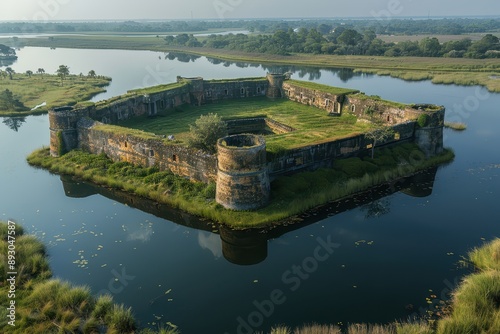 Aerial View of Strategic Historical Fort Surrounded by Moat showcasing its Impressive Design and Location