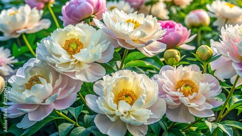 Aerial View of White Peony Blooms in Full Bloom - Stunning Garden Floral Photography
