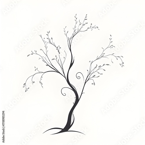ai, generative, tree, elegant, graceful, winding, branch, stylised, illustration, art, artistic, simple, clean, serene, delicate, tranquil, nature, winter, cold, subtile, monochrome, greyscale, watercolor, ink, painting, silhouette, design, motif, fluid, organic, curved, beauty, simplicity, peaceful, calm, aesthetic, sparse, leaf, botanical, graphic, symbol, pattern, decorative, abstract, natural, harmony, quiet, soft