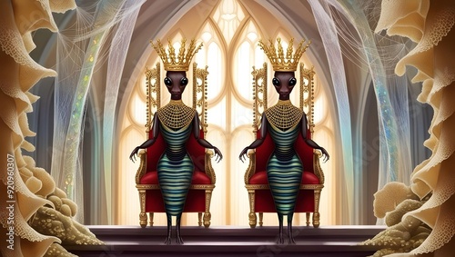 interior, building, inside, art, statue, chapels, painting, fresco, decoration, insect, ant, illustration, nature, graphic, wildlife, animal, antennae, red, background, artwork, asset, creature, detailed, colours, color image, image, leg, no people, cartoon, character, king, crown, kingdom, fantasy, imagination