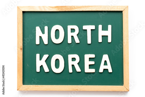 Alphabet letter in word North Korea in blackboard on white background