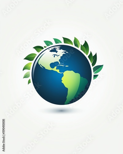 An eco Earth globe in blue and green, representing world protection and ecological conservation, Save the Planet logo, Earth Day and sustainability theme