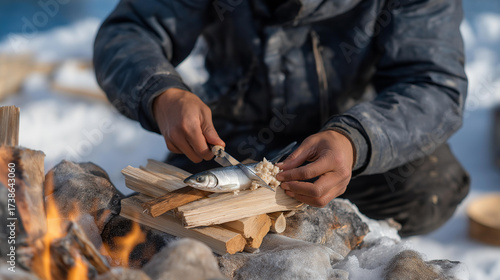 eskimo, hunter, fish, snowfield, fire, traditional, fishing, winter, cold, outdoors, skill, texture, cooking, nature, hunting, artisan, craftsmanship, indigenous, food preparation, animal, scale, slicing, glacé, environment, expedition, survival, arctic, landscape, low angle, hand, ethnic, cultural, moment, travel, life events, adventure, male, portrait, winter sports, native, wildlife, rural, recreation, activity, exploration