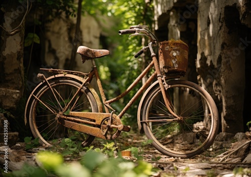 old, rust-eaten, bicycle, covered, green, plant, bike, nature, abandoned, metal, cycle, natural, plant, wild, dirty, environment, overgrown, foliage, rusted, vintage, grunge, forgotten, green plant, harmony, environmentally friendly, sustainability, recycling, renewal, transformation, conservation, thought provoking