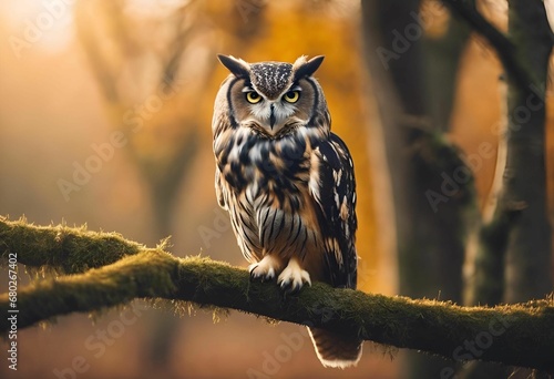 owl, gnarled, mossy, tree branch, lush, forest, majestic, tree, foliage, nature, wildlife, perch, twig, solitude, wild, bird, wooded, environment, outdoors, green, timberland, avian, alert, winged, birding, watchful, habitat, sharp, eye, wingspan, nocturnal, wing, talon, feathery, ai, generative, illustration, digital, art