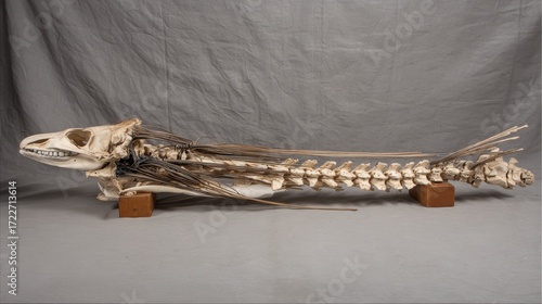 Anatomical Display of a Realistic Fish Skeleton on Neutral Background