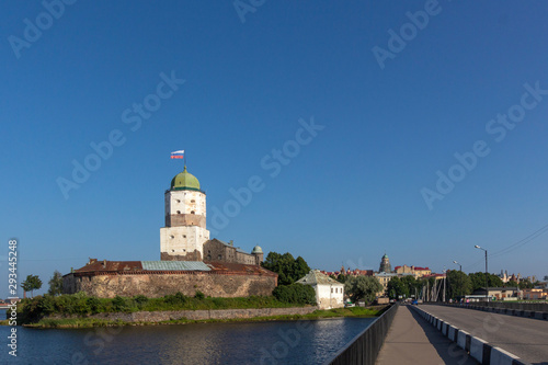 Ancient castle in Vyborg, Russia. View from bridge..