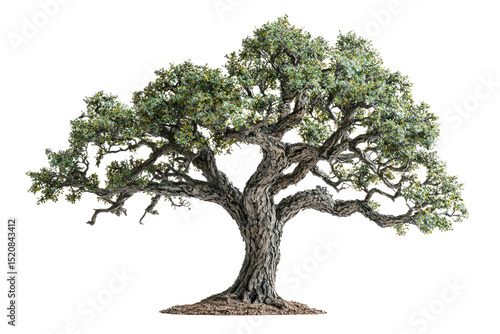 Ancient, majestic bonsai tree with gnarled trunk and lush foliage, isolated on transparent background background removed