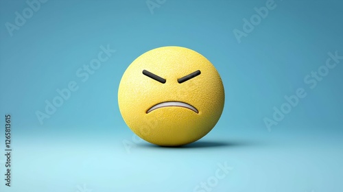 angry, frustrated, yellow, digital artwork, expression, face, emotion, graphic, mood, annoyed, mad, irritated, blue background, sphere, displeased, unhappy, upset, three-dimensional, illustration, design, graphic design, digital, art, rendering, image, cartoon, icon, symbol, signs, textured, geometric, round, simple, minimal, abstract, modern, contemporary, computer graphic, virtual