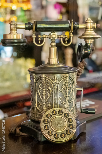 antique telephone at the bar in the cafe
