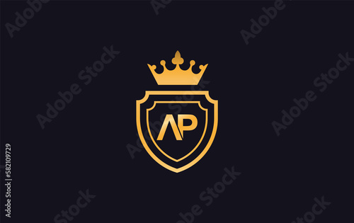 AP Crown and shield symbol icon. royal luxury shield monogram