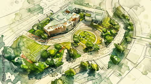 environmentally friendly, architecture, sustainable, blueprint, vignetting, concept, building, urban