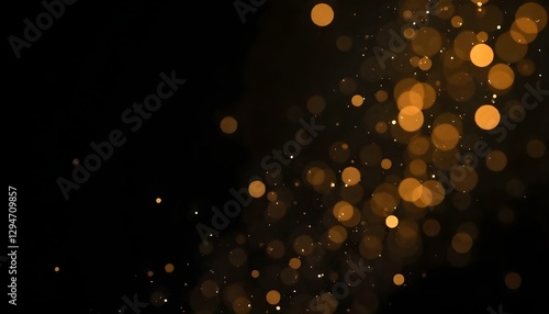 Arte digital abstracto, que presenta un fondo negro con una disposición dinámica de círculos amarillos dorados de diferentes tamaños, creando un efecto bokeh