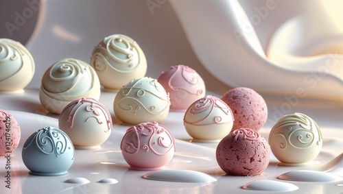 chocolate, truffle, dessert, colourful, sweet, artistic, epicure, candy, indulgent, creamy, smooth, decorative, elegant, presentation, favor, treat, confectionery, handcraft, delicious, texture, aesthetic, delicate, luxury, celebratory, pastry, confection, beautiful, festive, refined, appealing, melting, concept, mood, design