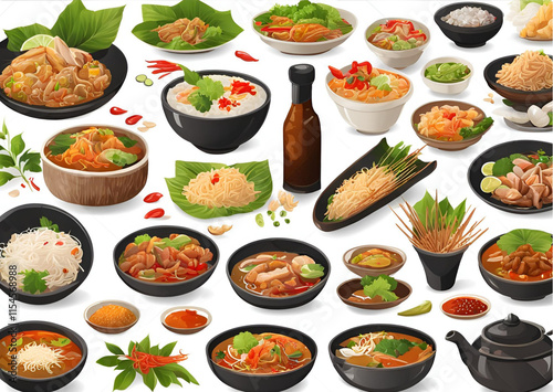 Asian Cuisine Dishes Noodles Rice and Sauces