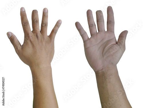 Asian man right hand injured while working on his middle finger.