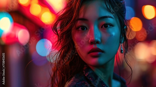 Asian Model in Colorful Lights