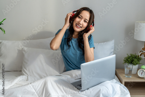 music, earphones, laptop, woman, study, bed, listen, female, beauty, earphones, beautiful, activity, asian, bedchamber, casual attire, computer, enjoy, fashion, freelance, fun, girl, happy, home, house, lady, learn, leisure, lifestyle, looking, modern, people, person, player, put on, relax, rest, room, sing, sitting, smile, song, sound, student, technology, teenage, trendy, weekend, wireless, working