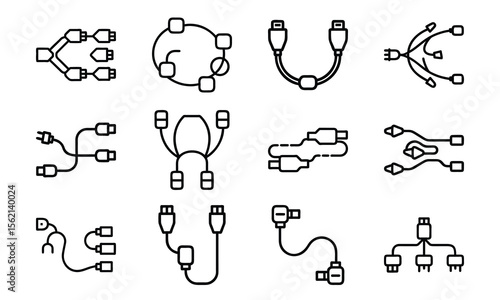cable, connector, digital, computer, technology, datum, network, usb, power, audio, video, electronic, icon, set, collection, vector, illustration, isolated, line art, graphic, outline, black-and-white, minimalist, simple, design, equipment, device, connectivity, information, cartoon, animal, cat, pattern, doodle, vignetting, drawing, dog, seamless, baby, symbol, art, element