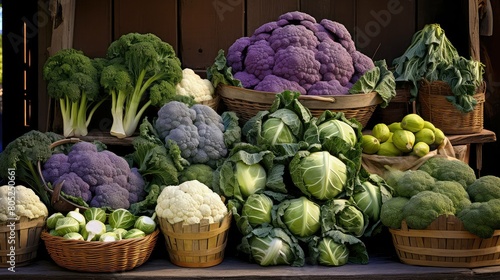 assortment, cabbage, broccoli, fresh, illustration, farmer, market, stall, vegetable, basket, display, vibrant, colours, contrast, rustic, organic, healthy, nourishment, farm, harvest, green, leafy, crunchy, delicious, cooking, receipe, salad, soup, stir, fries