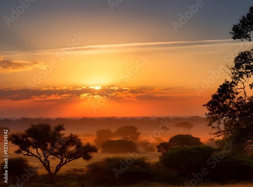 sunset, sky, sun, cloud, landscape, tree, nature, orange, cloud, silhouette, evening, sunrise, tree, dusk, beautiful, red, colours, blue, sundown, yellow