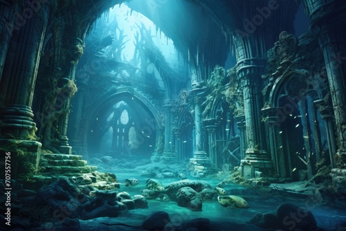 Atlantis Ruins: An artistic depiction of an underwater ancient city.