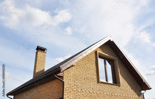 attic, brick wall, sky, roofing, house, home, residential, construction, metal, chimney, building, exterior, installation, gutter, waterproof, repair