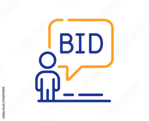 Auction line icon. Bid offer sign. Raise the price up symbol. Colorful thin line outline concept. Linear style auction icon. Editable stroke. Vector