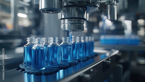 Automated Bottle Filling Process in Modern Pharmaceutical Factory