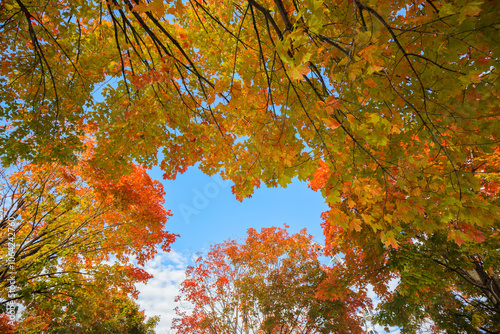 autumn, tree, fall, nature, sky, landscape, park, leaf, tree, grass, leaf, yellow, forest, season, blue, red, maple, garden, foliage, orange, colours, tree branch, outdoors, road, colourful, montreal, canada, colours