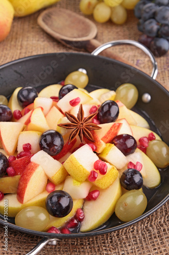 fruit, salad, autumn, grape, apple, pear, pomegranate, anise, star, spice, food, fresh, cook, cooked, cookery, culinary, diet, healthy, nourishment, casserole, assorted, breakfast, eating, mixed, dessert, sweet, delicious, aroma, rustic, studio shot