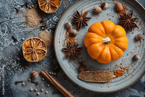 pumpkin, spice, autumn, harvest, rustic, plate, star anise, cinnamon, nutmeg, clove, food, seasonal, fall, decor, cooking, baking, ingredient, kitchen, table, texture, background, culinary, favor, aroma, seasoning, epicure, organic, natural, fresh, healthy, diet, nourishment, vegetable, herb, arrangement, artistic, still life, cosy, warm, festive, holiday, preparation, receipe, traditional, homemade, delicious, aromatic