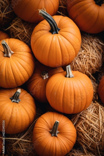autumn harvest pumpkins on hay, Halloween decorations for sale, Generative AI
