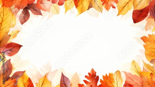 Autumn Leaves Watercolor Frame. Fall Background with Copy Space