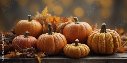 Autumnal Still Life with Pumpkins and Corn.