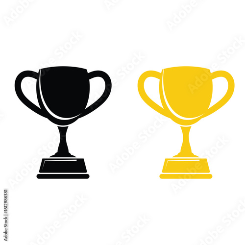 trophy, cup, award, prize, vector, icon, silhouette, black, gold, white, success, winner, champion, achievement, reward, celebration, design, modern, shiny, honour, excellence, placement, contest, victory, sport, ceremony, concept, stylish, minimal, ranking, recognition, symbol, graphic, collection, set