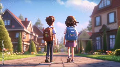 Back to school concept. School kids with backpacks going to school, Generative AI
