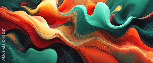 abstract, background, texture, three-dimensional, wave, liquid, green, red, turquoise, marin, fabric, paint, gouache, flow, swirl, fluidity, alive, computer art, ai, curve, blend, cover, design, modern, bend, pattern, wallpaper, energy, motion, geometry, style, futuristic, minimalism, illustration, smooth, banner, technology, light, shape, innovation, creativity, gradient, poster, graphic, effect, bright, volume