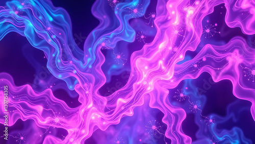Background depicting a bioluminescent abstract mystical phenomenon, pastel colors, bright glow, surreal and mysterious atmosphere