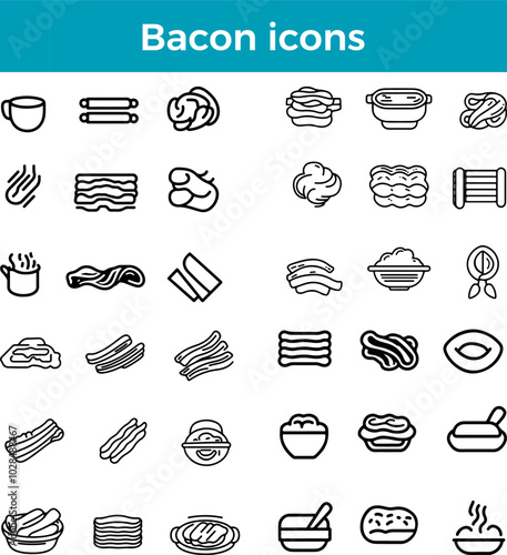 Bacon icons vector savory meat delicious breakfast treat illustration
