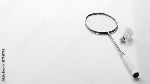 Badminton Racket and Shuttlecock on Minimalist White Background for Sports and Fitness Themes