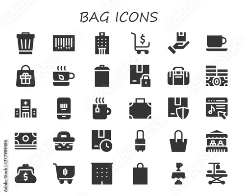 bag, icon, set, vector, trash, barcode, hospital, shopping, cart, package, hot drink, cup, tea, garbage, sport, money, suitcase, music, store, picnic, grocery, purse, office, latte, hospitalise, illustration, signs, symbol, design, isolated, black, shop, white, line, business, element, pictogram, object, graphic