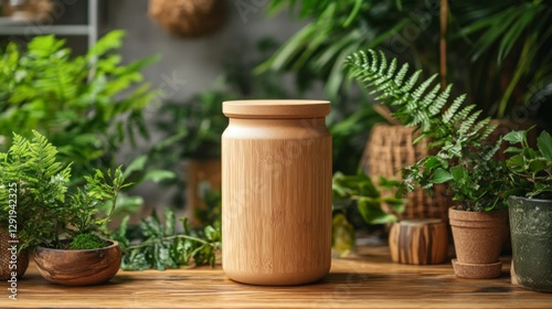 bamboo, container, jar, plant, greenery, foliage, fern, leaf, green, nature, wood, organic, pot, pot, earth, dirtied, growth, life, environment, ecology, sustainable, natural, texture, pattern, home, decor, interior, design, style, scene, setting, background, brown, wooden, mossy, vibrant, healthy, palmy, lush, houseplant, terrarium
