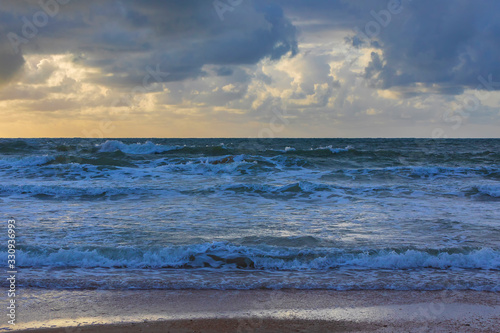 Beach in Herzliya in cloudy weather.