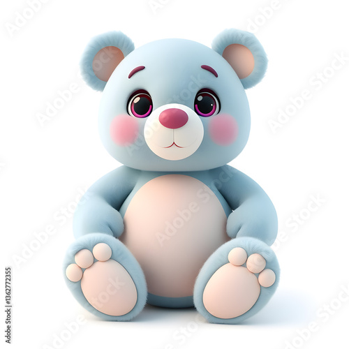 Bear – 3D baby bear, round belly, big paws, large eyes, light blue and pink tones, white background Generative AI