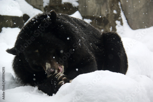 bear, snow, winter, animal, nature, white, black, cold, mammal, wild, wildlife, cat, forest, fur, cute, outdoors, mountain, tree, brown, mountain
