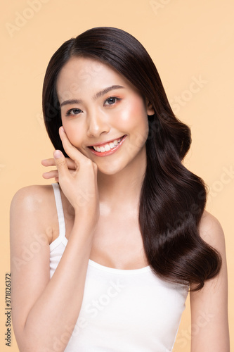Beautiful Asian woman looking at camera smile with clean skin